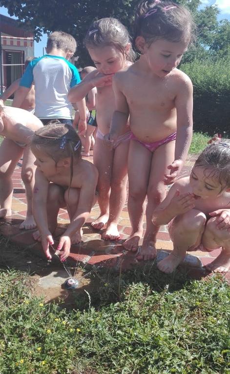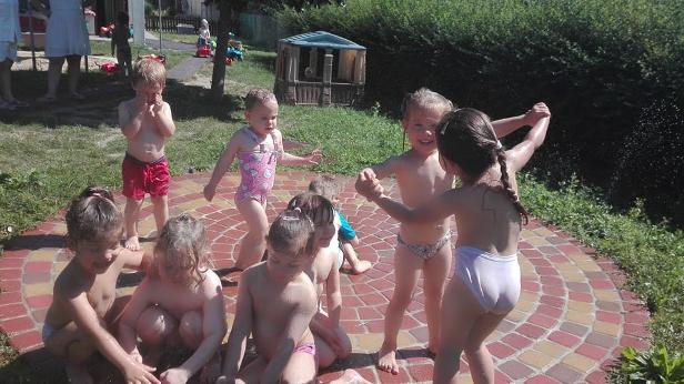 A balkányi új bölcsődében átadott gumitégla burkolatú vízpermetező |